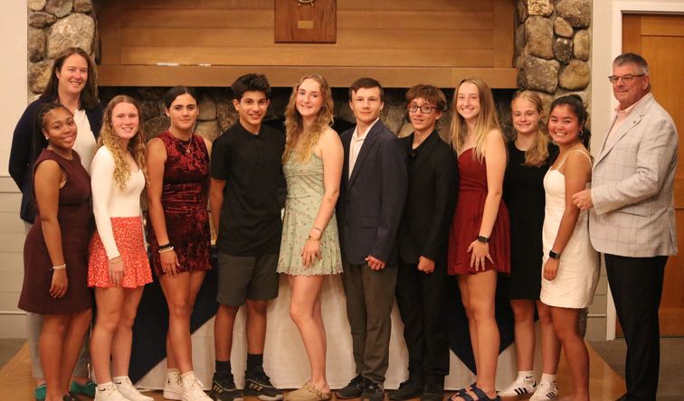 Feature Photo (l to r) Kristy Kerin, Kaaloni Boisvert '29, Casey Shea '26, Caitlin Cliche '26, Ever Sarnoff '29, Izzy Bailey '27, Charlie Tucker '29, Zack Linscott '28, Audrina Crowell '28, Chloe McLain '28, Anelya Caesar '27, Scott Curvey