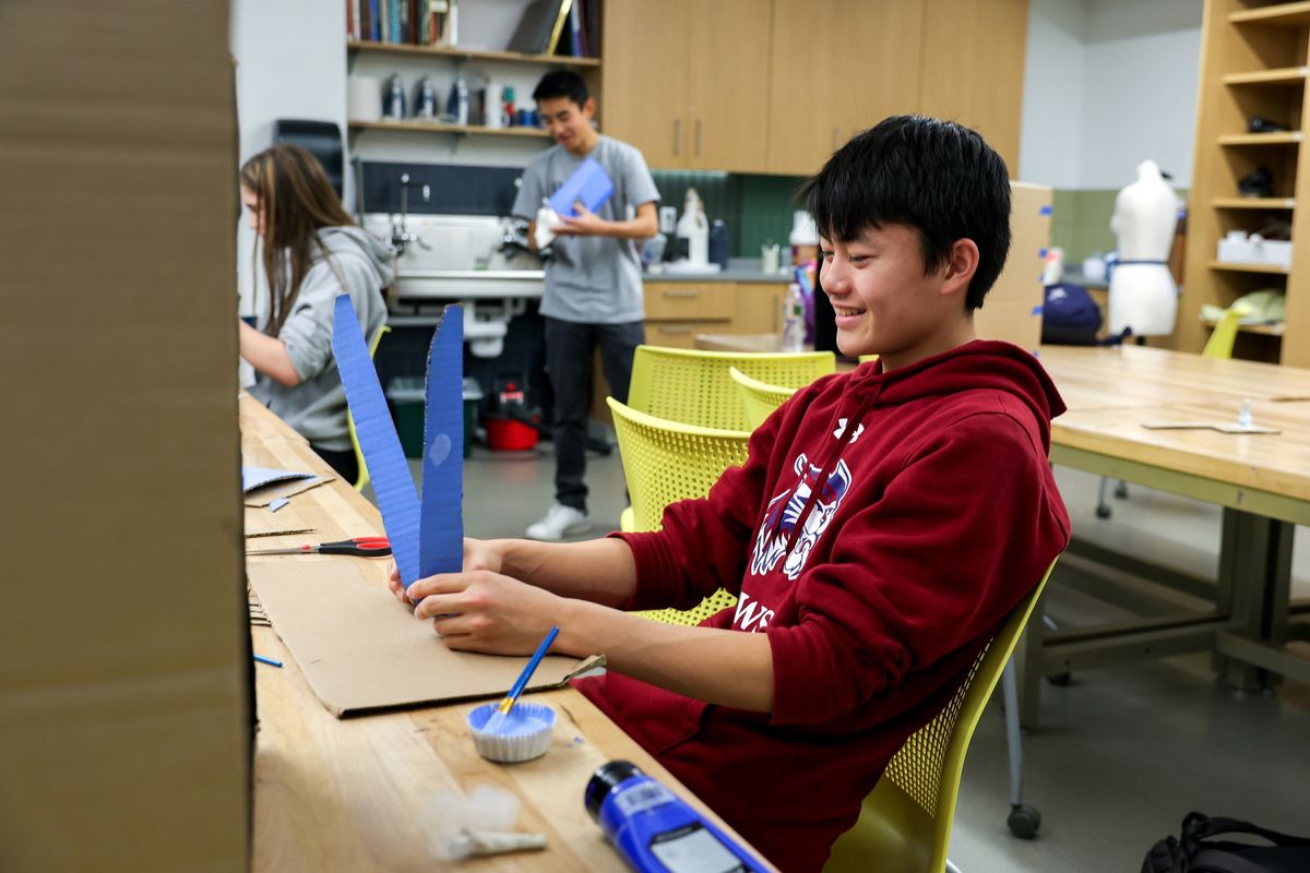 The course introduces the basics of fashion design and clothing production. In the fall, students learn about the fashion design process, from research and figure sketching to alterations and garment construction. They explore design thinking and problem-solving strategies as they experiment with form, material, and shape through projects such as upcycled fashion, recycled fashion, and pattern construction. In the winter, students continue their work in fashion design, with the opportunity to learn jewelry fabrication basics. In the spring, students explore textile design, including both the creative and technical aspects of fabric design. They experiment with techniques such as knitting, crochet, weaving, and needle felting. The course also focuses on sustainability and innovation in textile design, encouraging students to critically examine environmental impact.