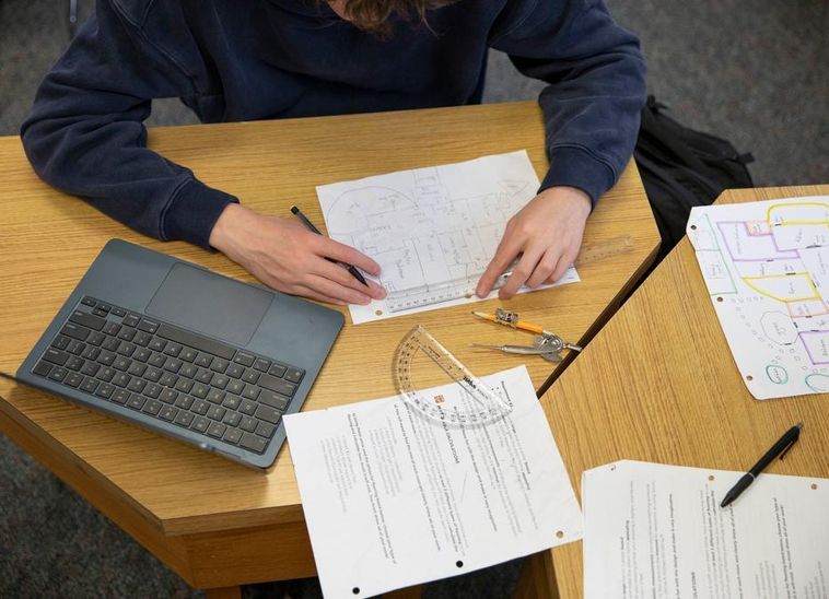 Students in Mr. Moore’s Geometry class don’t just decipher angles inside the classroom. They get outside, map steps around campus, and put their newfound knowledge of angles to use as they build out campus measurements obtained from their data.