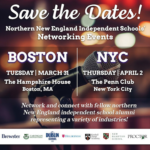 If you’re in the Boston or New York City area this spring, we’d love for you to join us for a great night of connection and conversation. On Tuesday, March 31 (Boston) and Thursday, April 2 (New York City), fellow northern New England independent school alums will come together from across industries to network, share ideas, and catch up. Whether you’re just starting out or well into your career, it’s a terrific chance to expand your network and reconnect with our broader community. Learn more and register for Boston here and New York City here.