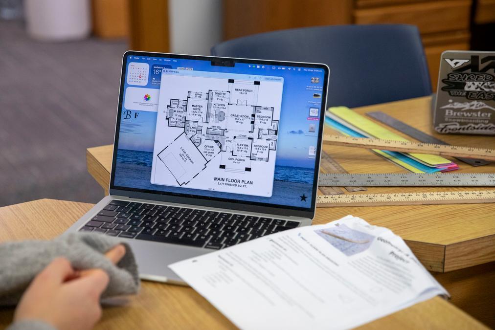 Over the course of one week in April, Mr. Moore's students took on the Dream Home project, a hands-on assignment that asked them to do exactly what the name suggests: dream. Students sketched out their ideal floor plans from scratch, incorporating everything they wanted, multi-car garages, expansive living spaces, luxury amenities, and more. Some used AI tools to help visualize early concepts before putting pencil to paper.