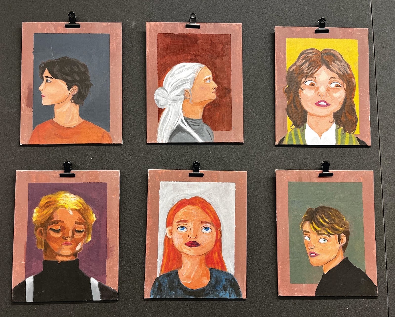 “Editor Liam Fahey had a big challenge to meet: surpassing the artistry and success of the previous year’s issue, which also won the REALM award,” Ms. Dumont said. “He imbued his own work into many aspects of the magazine: For example, we see photos of his capstone project as an art scholar. Following the example of the editors from the last several years, he created the cover himself, carving the designs into rubber stamps and experimenting with different color ways before settling on the final image. I think this kind of unique, creative work is part of why we earned this honor.”