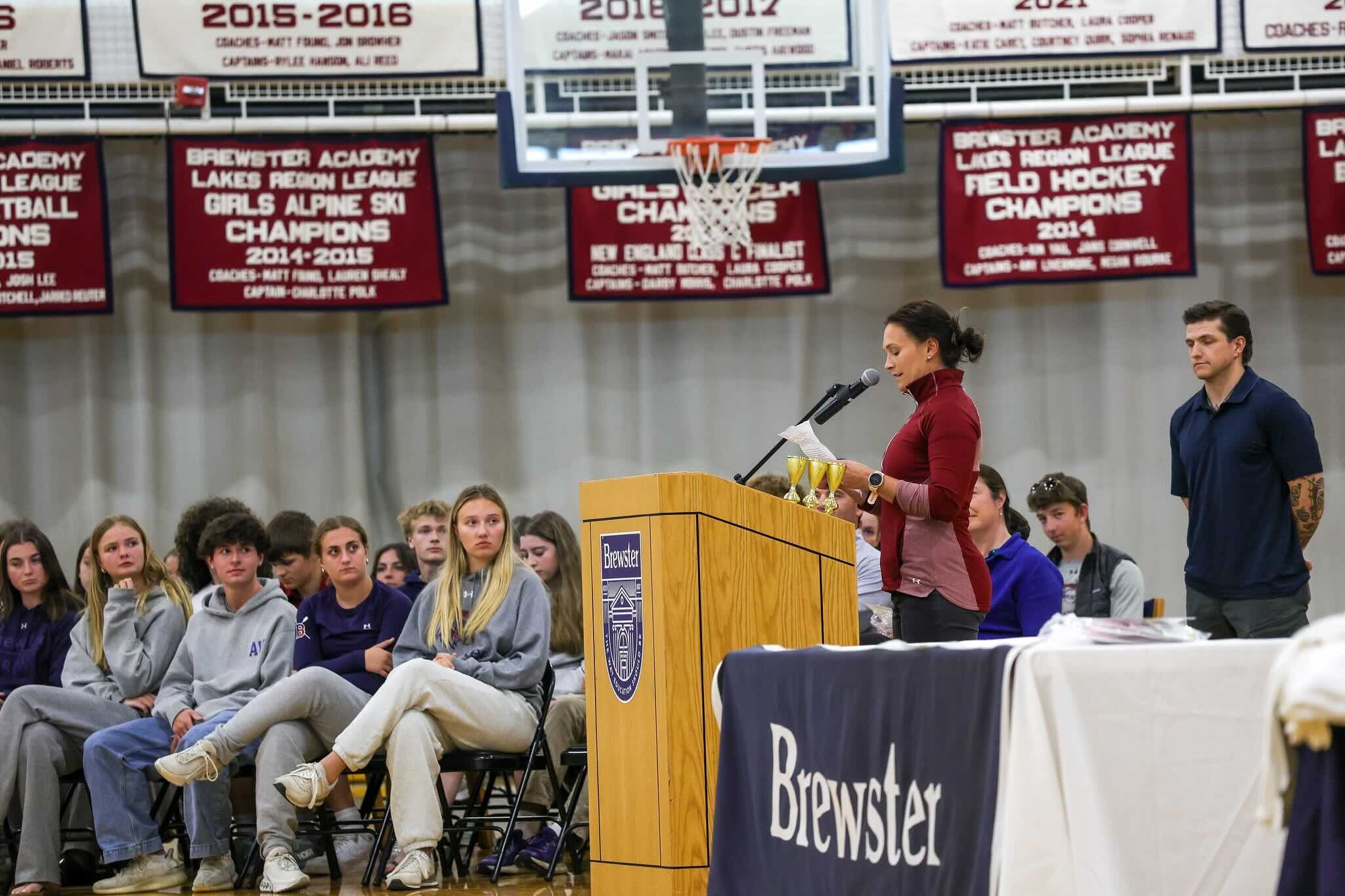 At an All-School Meeting in the Smith Center on May 20, with spring teams seated together with their coaches, Brewster’s Athletics Department awarded its Spring Sports Awards to student-athletes, including the coveted Director’s Prize.
