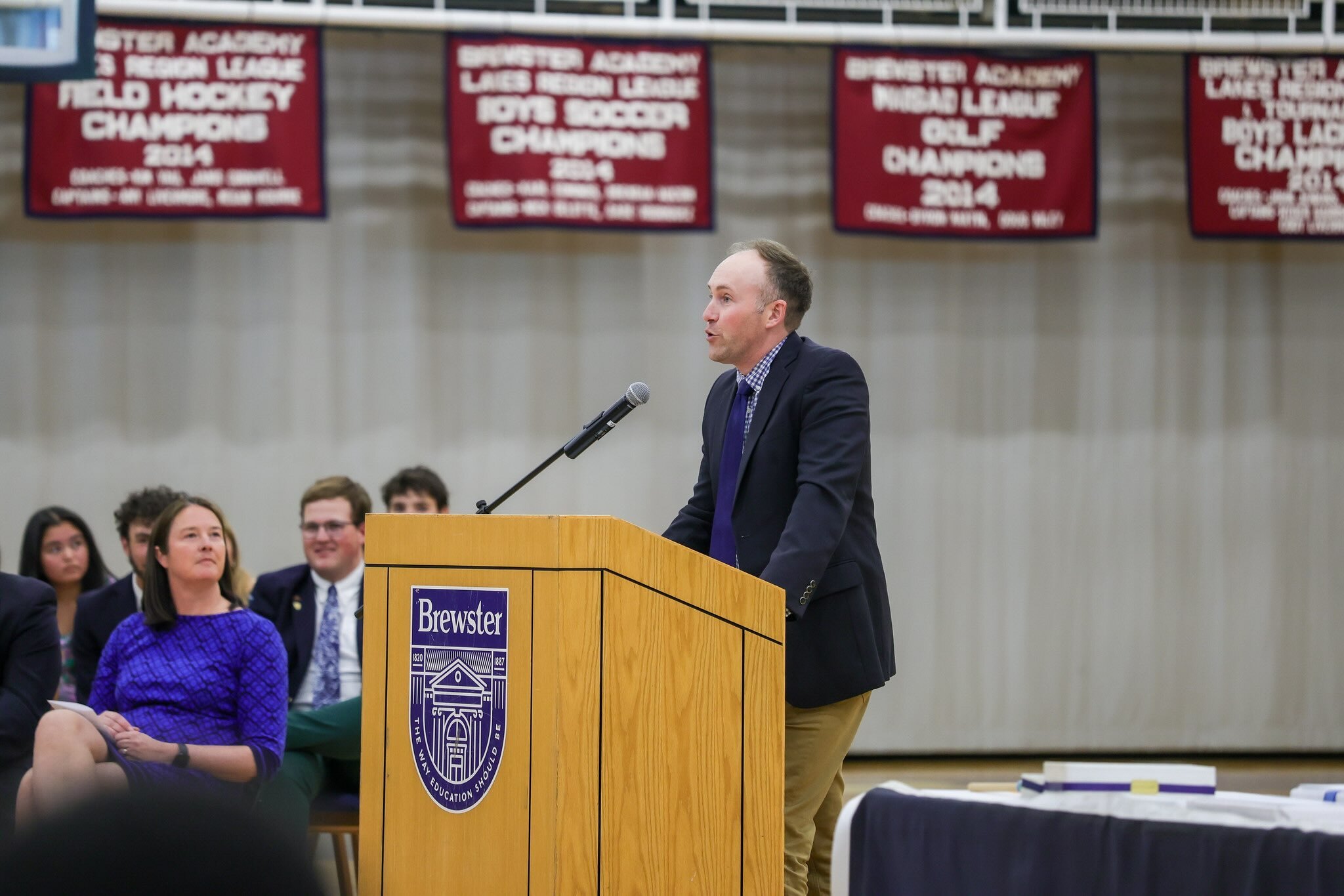 MUD is also the day the person chosen by The Winnipesaukean staff for the yearbook dedication is revealed. This year, that honor went to none other than Mr. Cushing, who seemed quite surprised by the secret that the Commencement Committee worked hard to keep from him over the weeks leading up to the ceremony. Yearbook editor Sofia Henley spoke about Mr. Cushing’s importance to students. “His guidance and dedication to Brewster students through their college journey have been nothing short of remarkable,” she said. “He has shaped thousands of futures through his wisdom, patience, and genuine care for each student's success. Beyond the walls of college counseling, his impact on Brewster extends to the basketball court, where his dedication as an assistant coach has played a pivotal role in the success of the Brewster Academy National Basketball Team.” Sofia emphasized Mr. Cushing’s ability to mentor, support, and lead—whether in the college process or competition, adding, “His office has always been a safe place where students share their fears and dreams. He has helped students shape those dreams, see their potential, and build futures.”