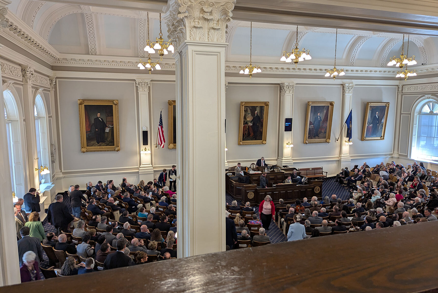 Mr. Browher offered perspective on the unique nature of the Page for a Day experience. “The N.H. House of Representatives includes 400 members, the largest representative body of any U.S. state and fourth largest in the world—especially remarkable for such a small state. In the State House, one can simply walk through the door and a minute later find ample seating in the gallery. These two students had the unique and special opportunity as invited guests of the chamber, only a handful of non-members allowed on the House floor. They had their names announced and received a standing ovation from the representatives from both parties, which they were especially surprised and honored by.”