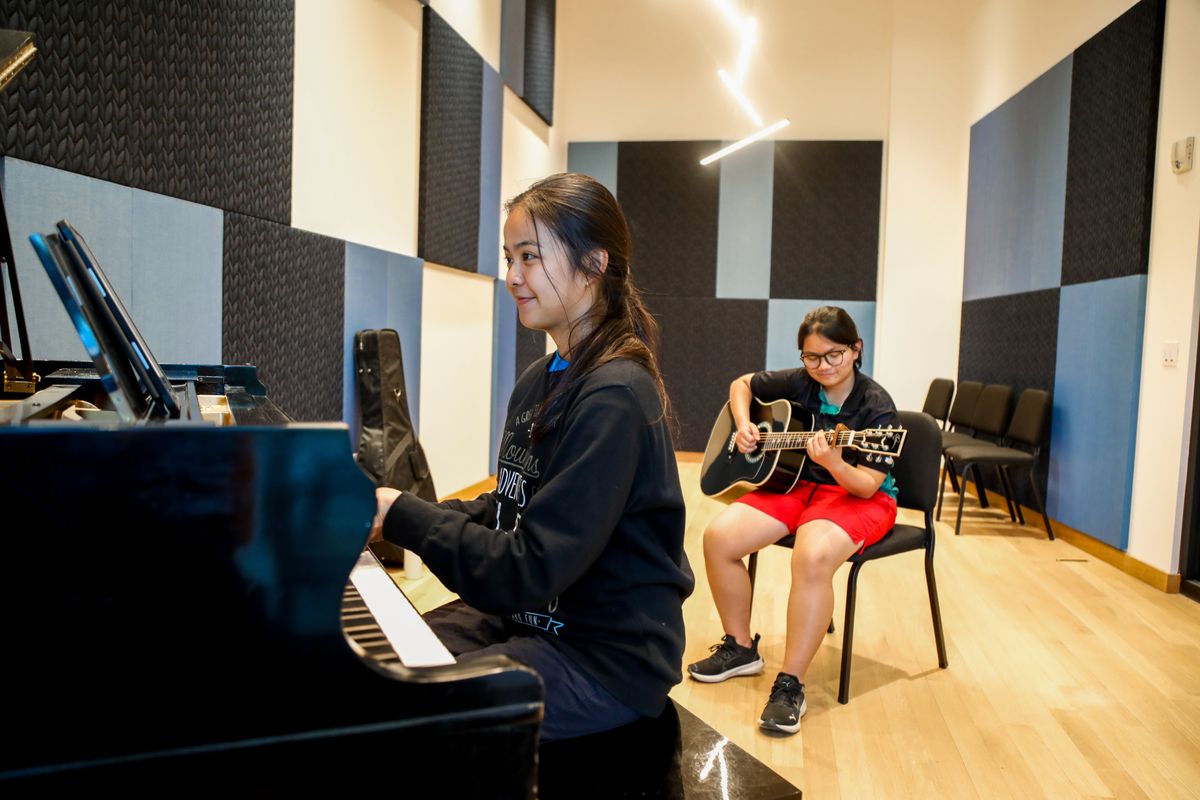 Whether you dream of being in the spotlight or making the magic happen behind the scenes, our music program offers something for everyone. Sing, play, produce—whatever your passion, you'll find a place to grow your skills. From school-wide performances to laid-back Coffee Houses, take the stage in a way that’s all your own.
